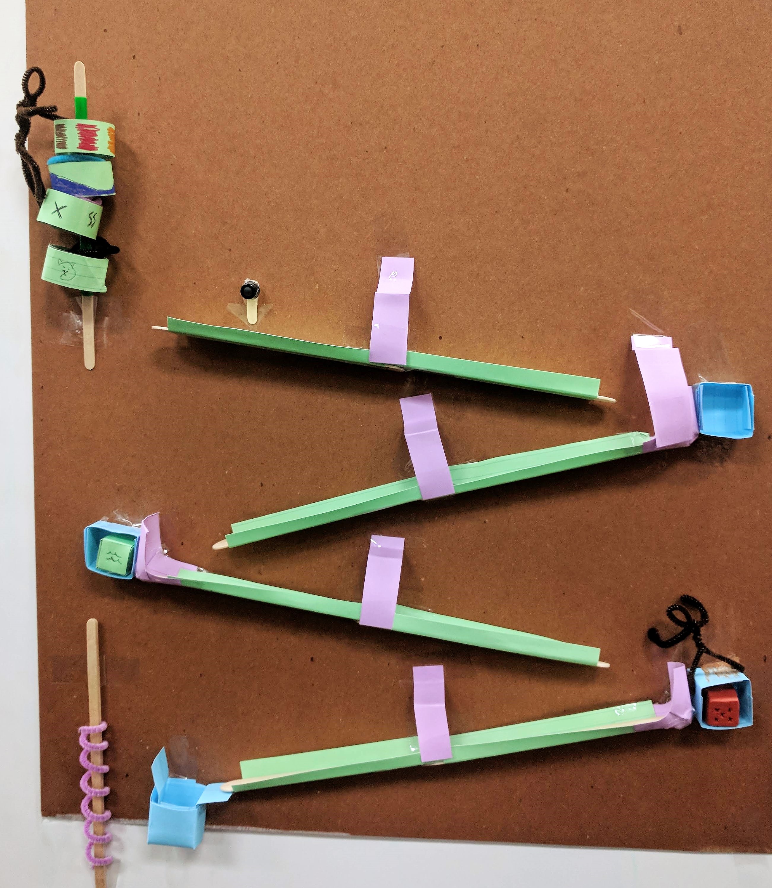 Fiona and David present some ideas for chimp enrichment, showcasing a rough model of the enrichment. It's a ball-activated sound sequencer that triggers different sound effects - all chosen by the chimpanzees who place tagged objects in RFID reader boxes. Rotating controls at the side mediate background sounds, such as waterfall, birdsong, nothing.